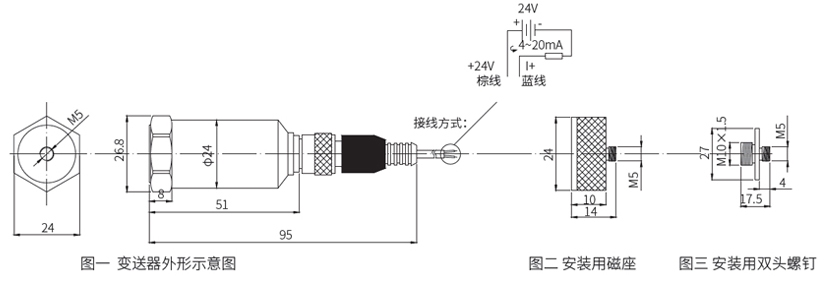 正确的将振动传感器与被测体连接,固定方法一般用厂家配备的双头螺钉或安装磁座一头固定在传感器底座中心孔,另一端固定在旋转机械的轴承合适的位置。为消除现场干扰,必须使用屏蔽电缆,且屏蔽层一端接地。